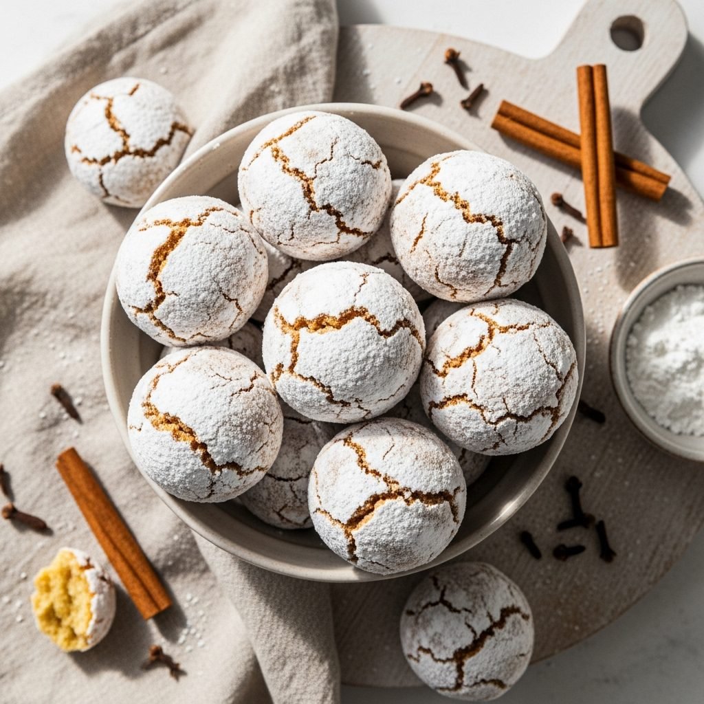 Soft, spiced molasses cookies rolled in powdered sugar—easy to bake, cozy to eat, and ideal for gifting or holiday snacking.