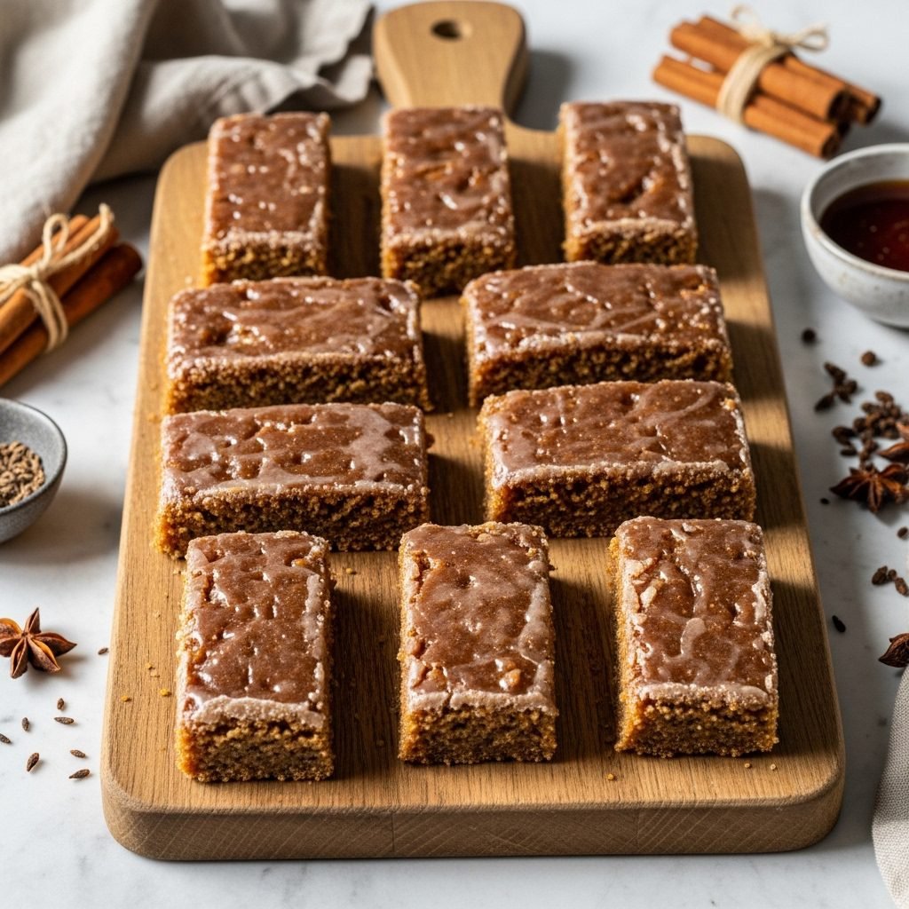 Soft, spice-rich Printen bars with warm molasses flavor and a gentle sugar glaze—cozy, fragrant, and perfect for holiday baking.